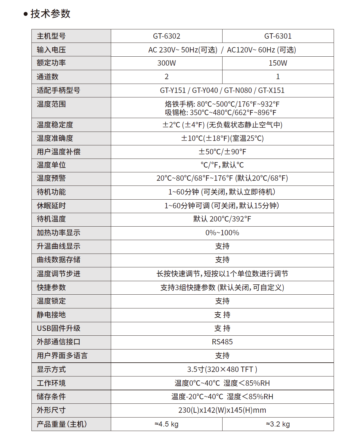●支持待机休眠、蜂鸣讯响、温度锁定、温度补偿、温度单位℃/℉转换;